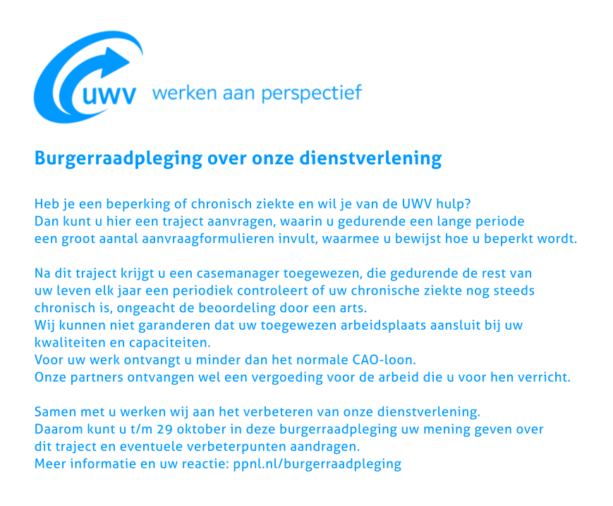 Het UWV maakt fouten met uitkeringen en stort mensen zo in armoede, door fouten in algoritmen en berekeningen. Vervolgens stellen ze voor die fouten ‘op te lossen met AI’. Snap jij het nog!? Verder werken ze erg bureaucratisch, met overbodige administratie, onnodige controles en illegale privacyschendingen. En ontvangen mensen nog steeds niet de uitkering of loon waar ze recht op zouden moeten hebben. De Piratenpartij lost dit op door regels, controles en administratielast te schrappen. Dat doen we door meer te vertrouwen op het professioneel oordeel van hulpverleners. We bieden mensen passend werk met een eerlijk inkomen, en leven het discriminatieverbod streng na. We voeren strenger toezicht op ICT en algoritmen via het Ministerie van Digitale Zaken. Mocht er alsnog een foutje worden gemaakt, dan kan de overheid beter wat ruimhartiger compenseren, dan elk detail controleren, tegen de eigen burgers procederen, en zo voor elke uitgekeerde euro meer dan 70 cent aan controles en juristen uit te geven. Dat geld kan beter volledig naar de gedupeerden!