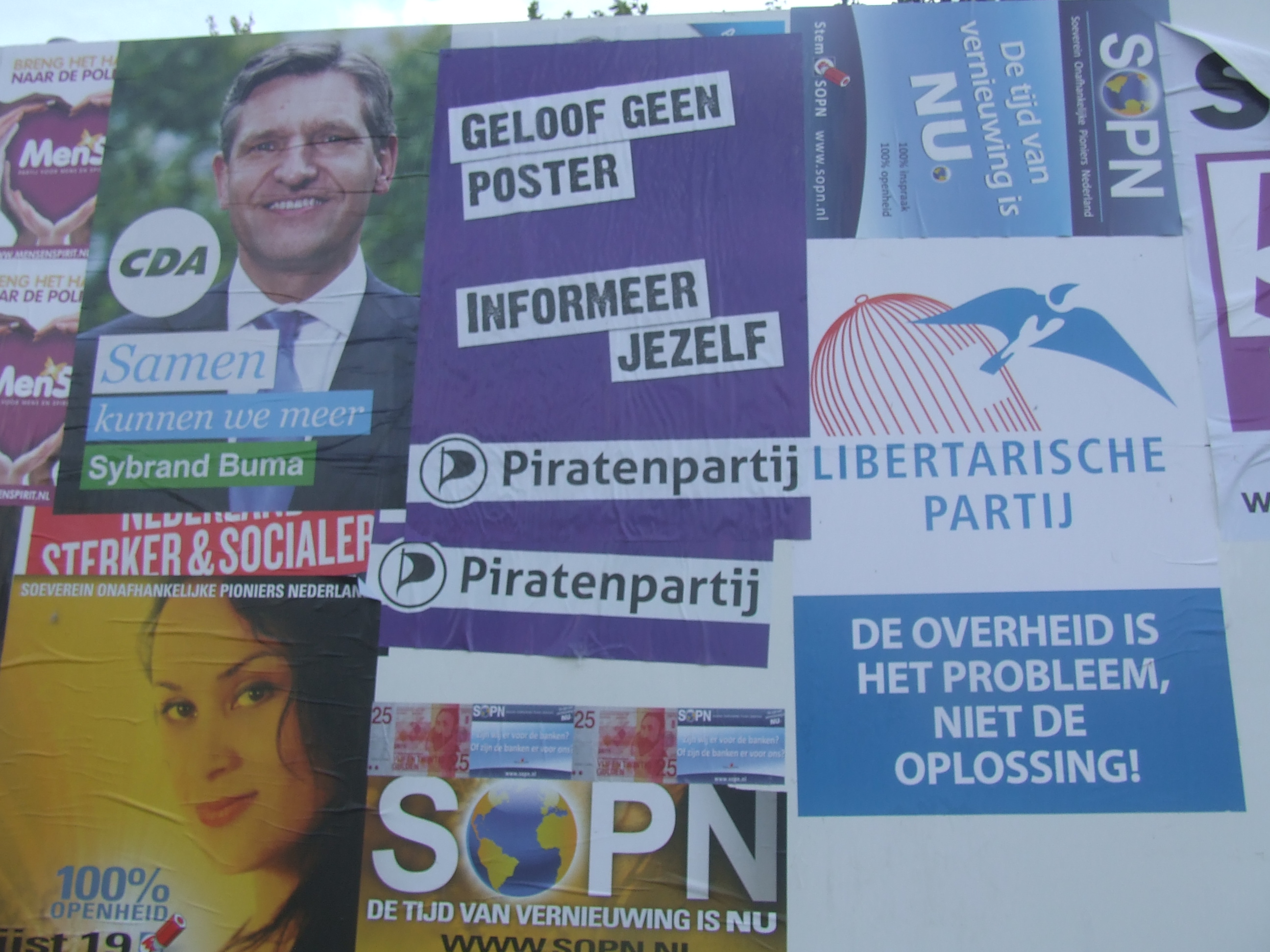 Gisteren geplakt in o.a. Heerenveen en Joure, samen met Yorick. Op een paar borden hingen zelfs al posters van de Piratenpartij. Maar zo troffen wij een een verkiezingsbord in Joure aan: